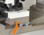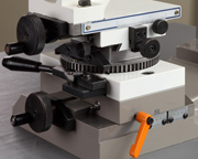 - Vertical axis with micromatic screw adjustments for fast location/retraction of work piece.